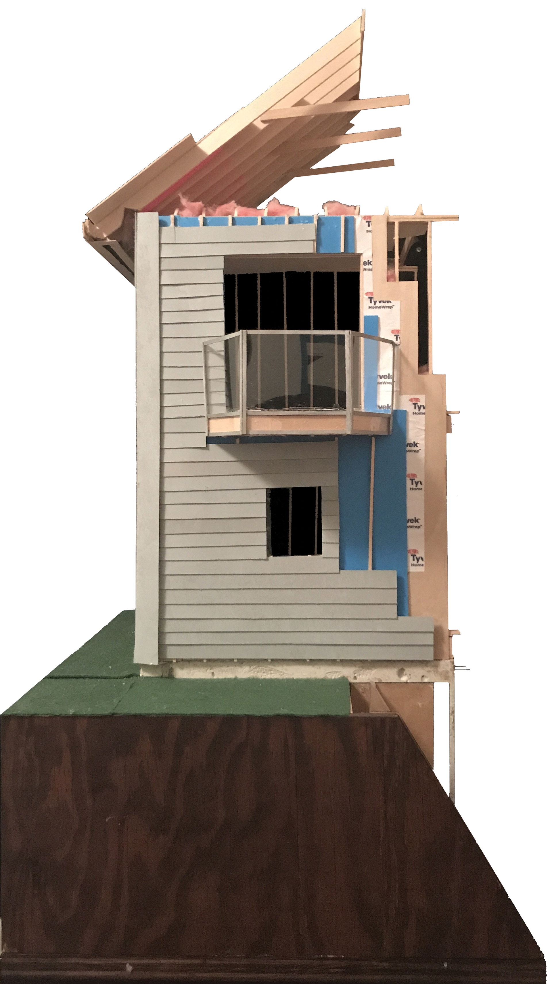 Wood frame construction of a two-story house at 1” = 1’-0” scale.